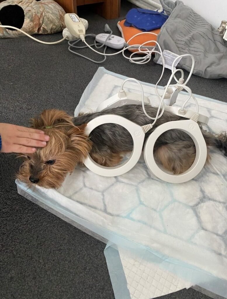 • Фізіотерапевтичний лазер. У реабілітації собак та котів метод лазеротерапії використовується після ортопедичних і неврологічних операцій, при остеоартритах, міозитах, а також для відновлення м’язової функції ;